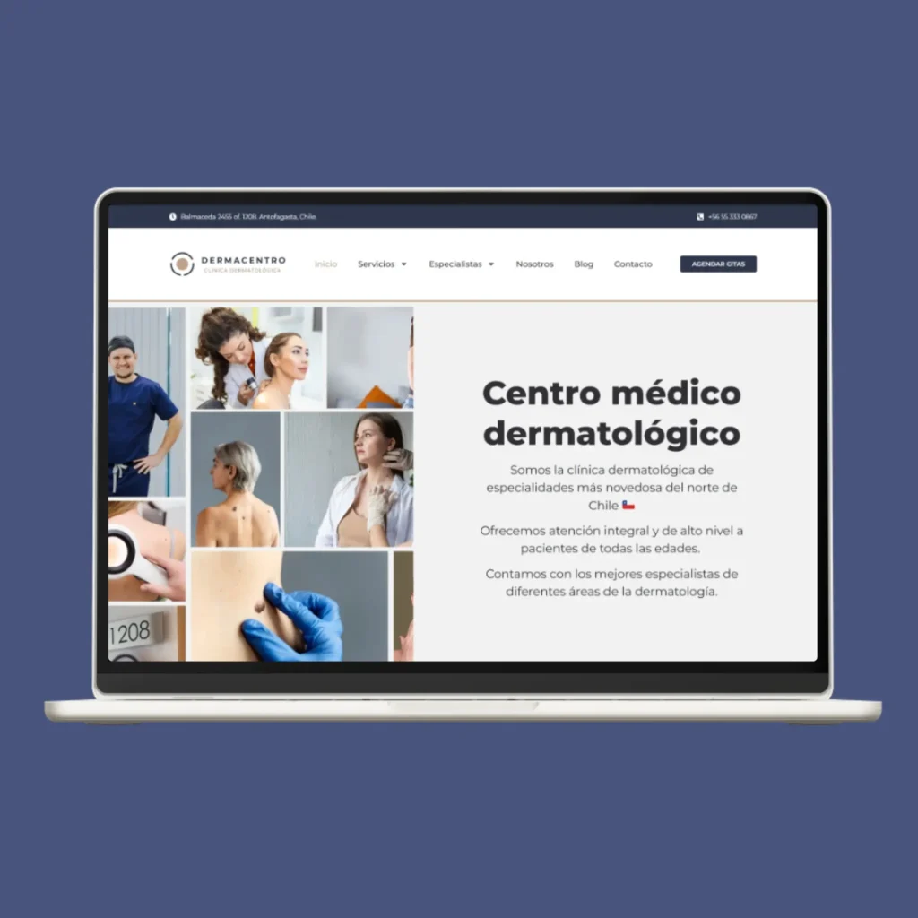 Diseño de identidad visual + sitio web multisección integrado con sistema de agendamiento para centro dermatológico en Antofagasta.